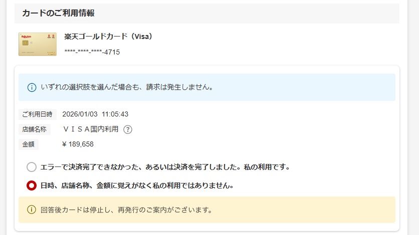 んやんや、新年早々19万弱の決裁が知らないところでかかると恐怖じゃね?