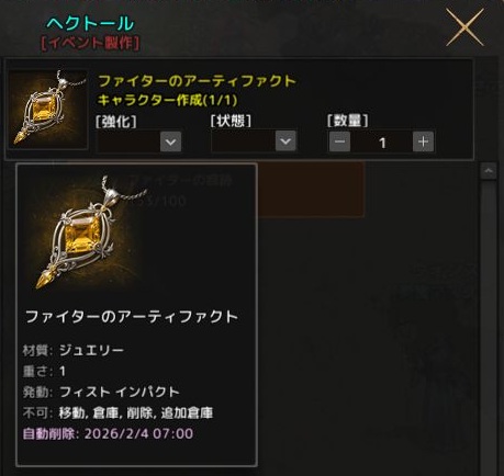 とりあえず、イベント期間中少しでも楽しもうということでアーティファクト(1段階?0段階?)を作成。