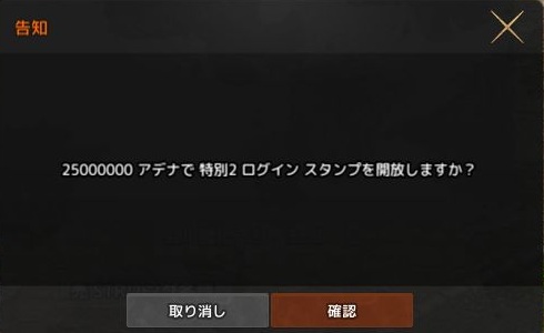 スペシャルログインスタンプ特別2(アデナ)を開放